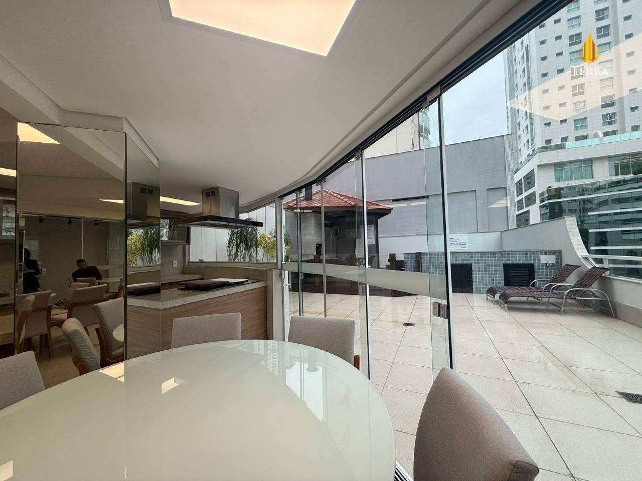 A sacada é um dos destaques do apartamento: ampla, bem ventilada e equipada com churrasqueira, perfeita para aproveitar bons momentos de lazer. A vista para o mar deixa o espaço ainda mais especial, oferecendo uma sensação única de bem-estar e conexão com a natureza.